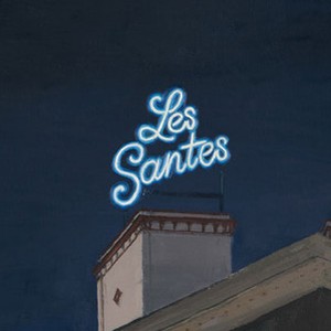 L'obra és una pintura a l'oli sobre fusta. L'autora també ha escrit a mà les lletres Les Santes que formen part del cartell. Ho ha fet imitant un cartell de neó, incorporant així un element modern i vistós al cartell.