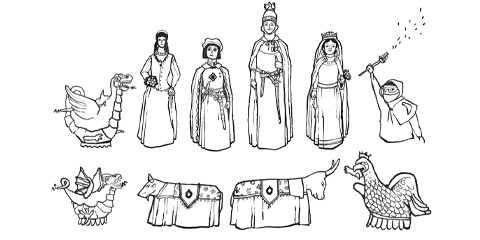 En Robafaves La Geganta La Toneta En Maneló Àliga Les Diablesses La Momerota La Momeroteta El Drac El Dragalió La Vella Verda La Vella Blava La Mulata La Bruixa En Patufet En Mataties En Jonàs En Carrau En Biada El Xinès El Pierrot El Pagès El Moro El Macer Seriós El Macer Rialler El Follet El Comte El Bufó Família Robafaves Comparses Nans